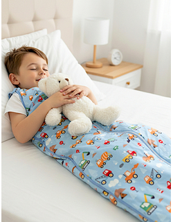 Babys geben den Komfort ihres Lieblingsschlafsacks nur ungern auf, wenn dieser zu klein geworden ist. Kein Wunder also, dass wir viele Anfragen bekommen haben, Schlafsäcke für größere Kinder in tollen Designs zu entwickeln! Als Anbieter von Babyschlafsäcken sind wir zurück an den Zeichentisch gegangen – mit dem Ergebnis: Ein Kinderschlafsack in der Größe 130 cm bis zu einer Länge von 200 cm! Eine bessere Passform mit mehr Fußfreiheit für einen besonders komfortablen Schlaf!