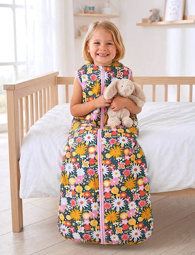 Der Kinderschlafsack hat ein großzügiges Design, sodass sich dein Kind frei bewegen kann. So liegt dein Kind bequem, ohne dass der Schlafsack einengt oder die Bewegungsfreiheit einschränkt.
