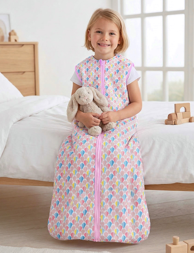Der Kinderschlafsack hat ein großzügiges Design, sodass sich dein Kind frei bewegen kann. So liegt dein Kind bequem, ohne dass der Schlafsack einengt oder die Bewegungsfreiheit einschränkt.