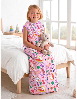 Ein großer Schlafsack für Kinder ist eine "tragbare Decke", die anstelle von traditionellen Decken und Bettlaken getragen wird. Er hat eine Öffnung für den Hals und Armlöcher, damit Ihr Kind die ganze Nacht über bei der richtigen Temperatur bleibt, ohne dass Decken verrutschen.