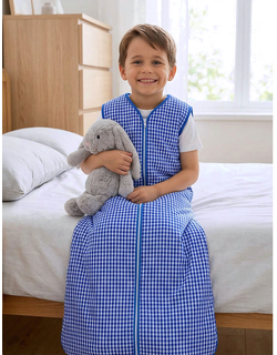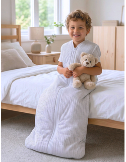 Ein Sommerschlafsack ist ein leichter und atmungsaktiver Schlafsack, der speziell für warme Nächte entwickelt wurde. Er besteht aus dünnen Materialien, meist 100% Baumwolle, und sorgt dafür, dass Ihr Kind kühl und komfortabel bleibt, ohne zu überhitzen. Der Sommerschlafsack ersetzt traditionelle Bettdecken und sorgt für eine konstante, angenehme Temperatur. Ideal für Raumtemperaturen über 19 Grad, bietet er auch Bewegungsfreiheit dank eines breiten Fußbereichs, sodass sich Ihr Kind frei bewegen kann, ohne sich zu verheddern oder zu überhitzen.